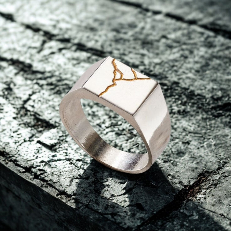 This handmade Chunky Kintsugi Signet Ring is made of sterling silver 925 and is