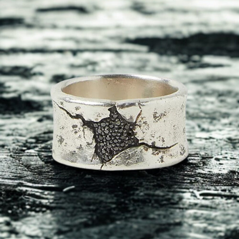 The handmade Cracked Faceted Band is made of pure sterling silver 925 and