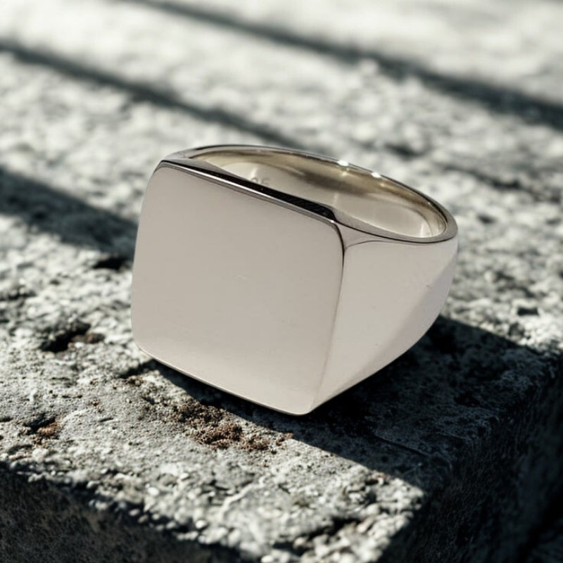 The handcrafted Cubic Slate Signet Ring is made of sterling silver 925 and is