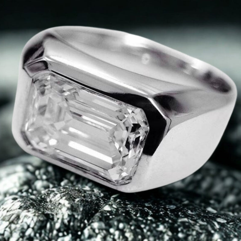 This handmade Emerald Cut Moissanite Ring is constructed of 925 sterling silver