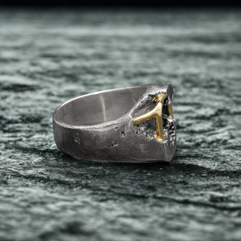 Bold yet refined, the handmade Fusion Constructed Two-Tone Ring is crafted