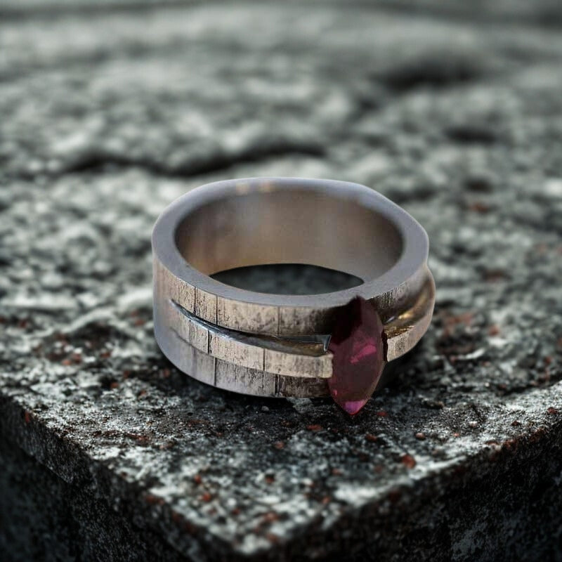 Elegant and fiery, this handmade Marquise Ember Band is crafted from sterling