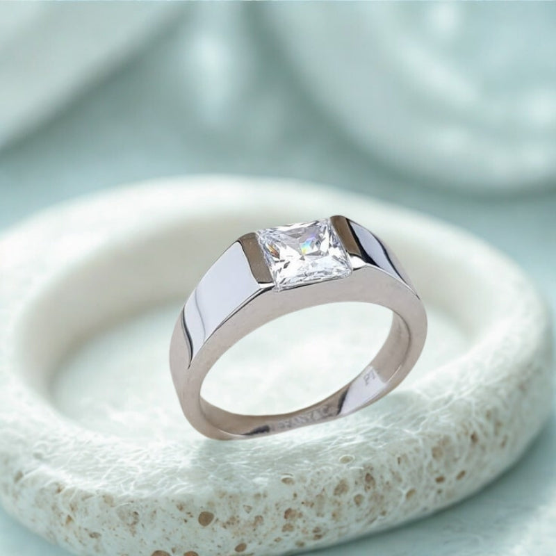 Princess Cut Moissanite Sterling Silver Ring