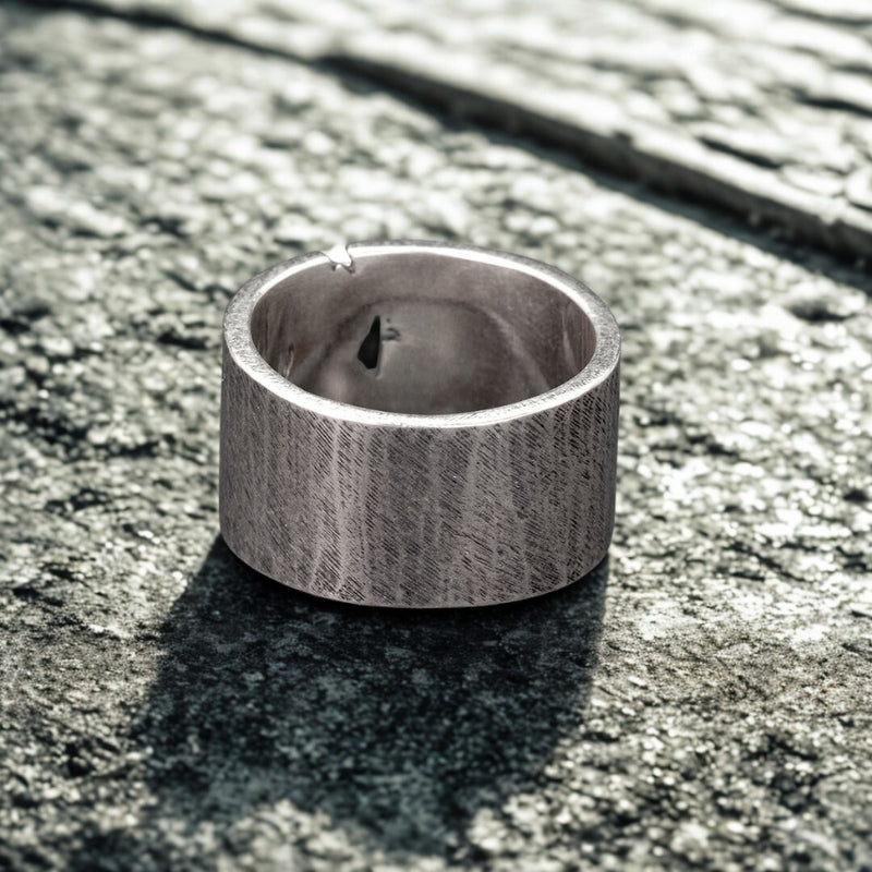 solid sterling silver 925. Featuring a striking contrast between rugged texture and