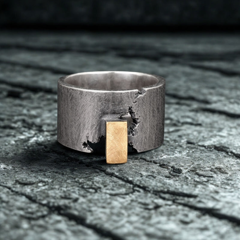 Raw meets refined in this handmade Raw Union Two-Tone Band, crafted from