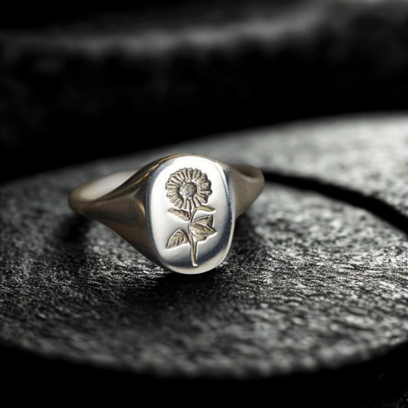 The handcrafted Sunflower Signet Ring is made of sterling silver 925 and