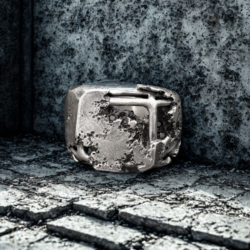 The Constructed Sterling Silver 925 Signet Ring is a sleek interpretation of