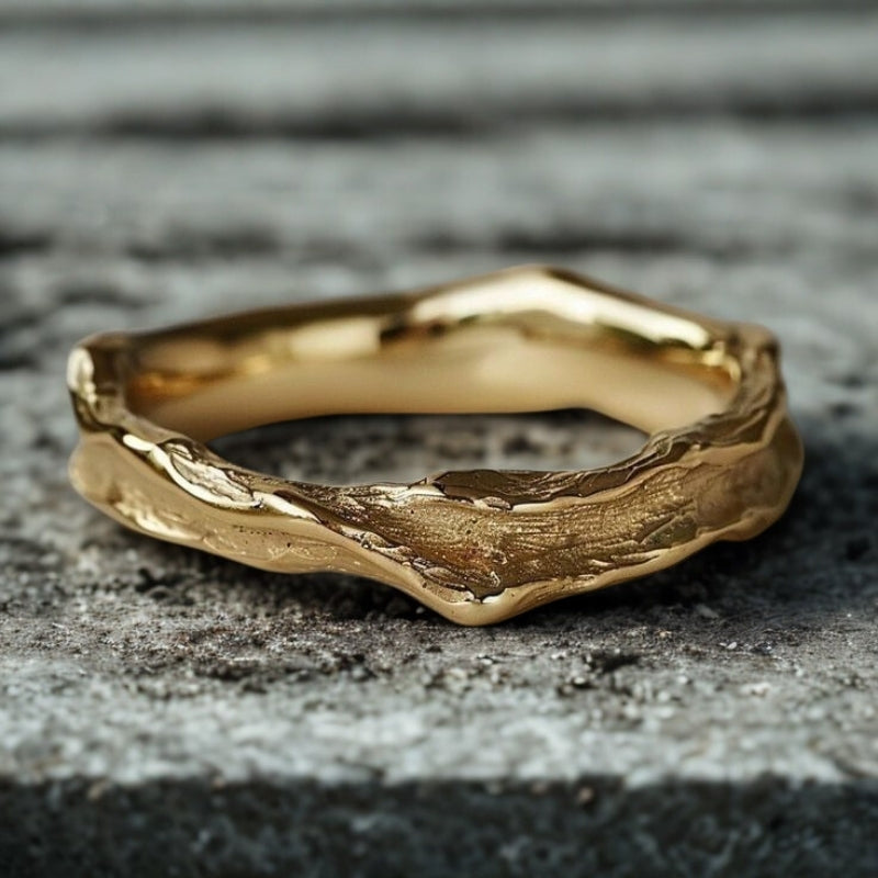 Inspired by nature’s quiet strength, the handmade Tree Texture Band is crafted