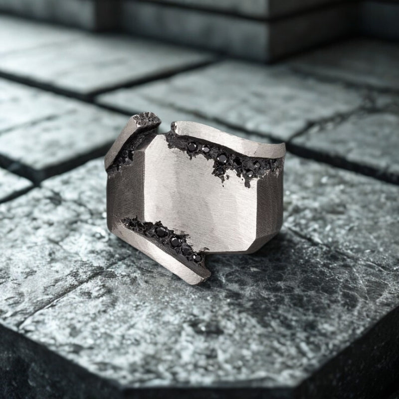 crafted from sterling silver 925, featuring bold Moissanite Black Diamonds or