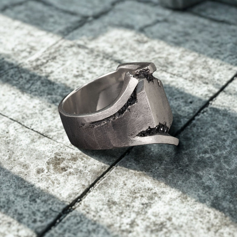 Edgy with a refined twist, the handmade Twisted Edge Constructed Ring is