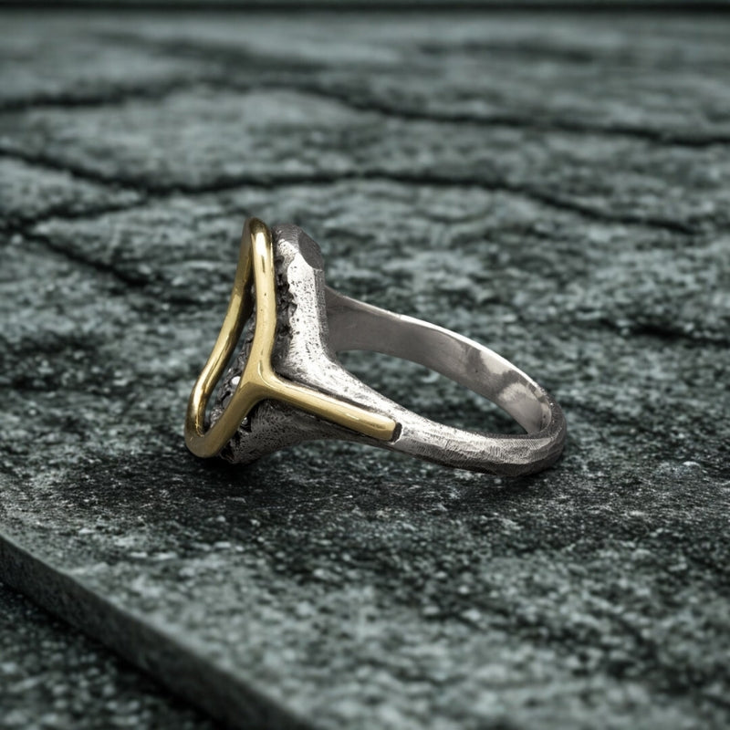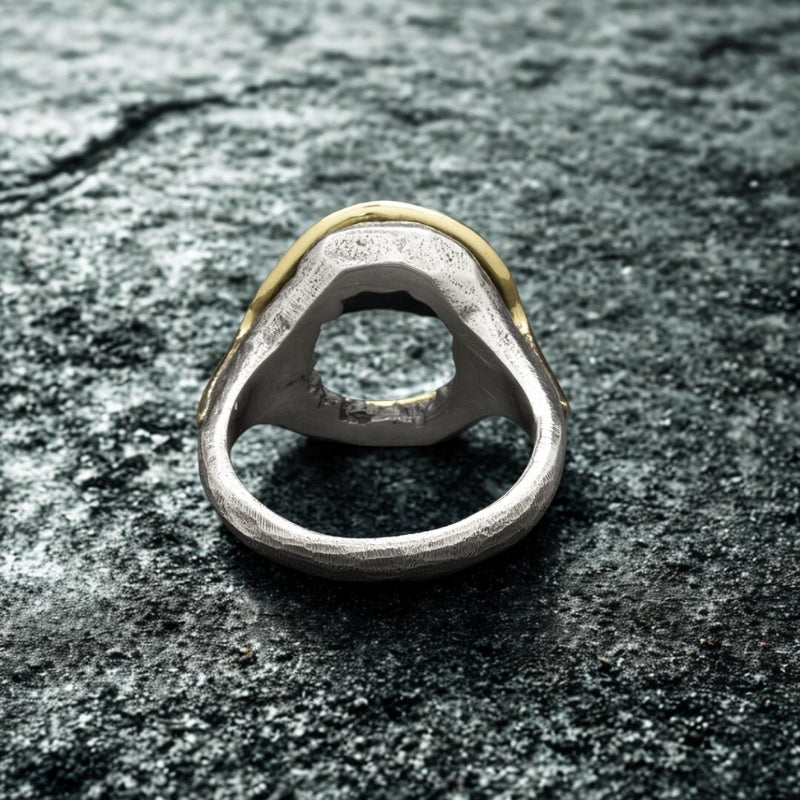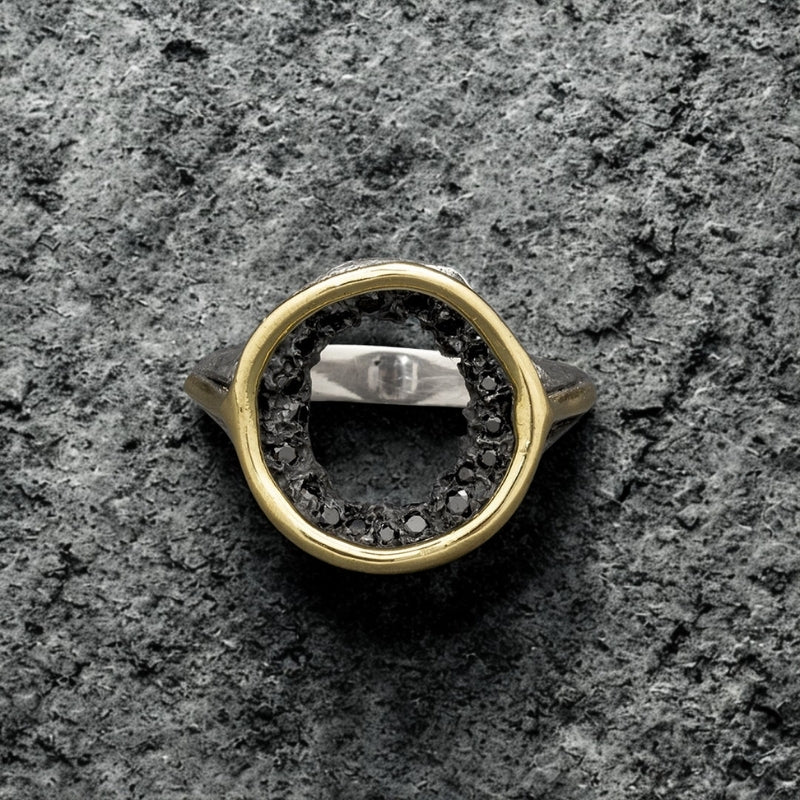 The handmade Void Circle Ring has a distinctive two-tone design in sterling